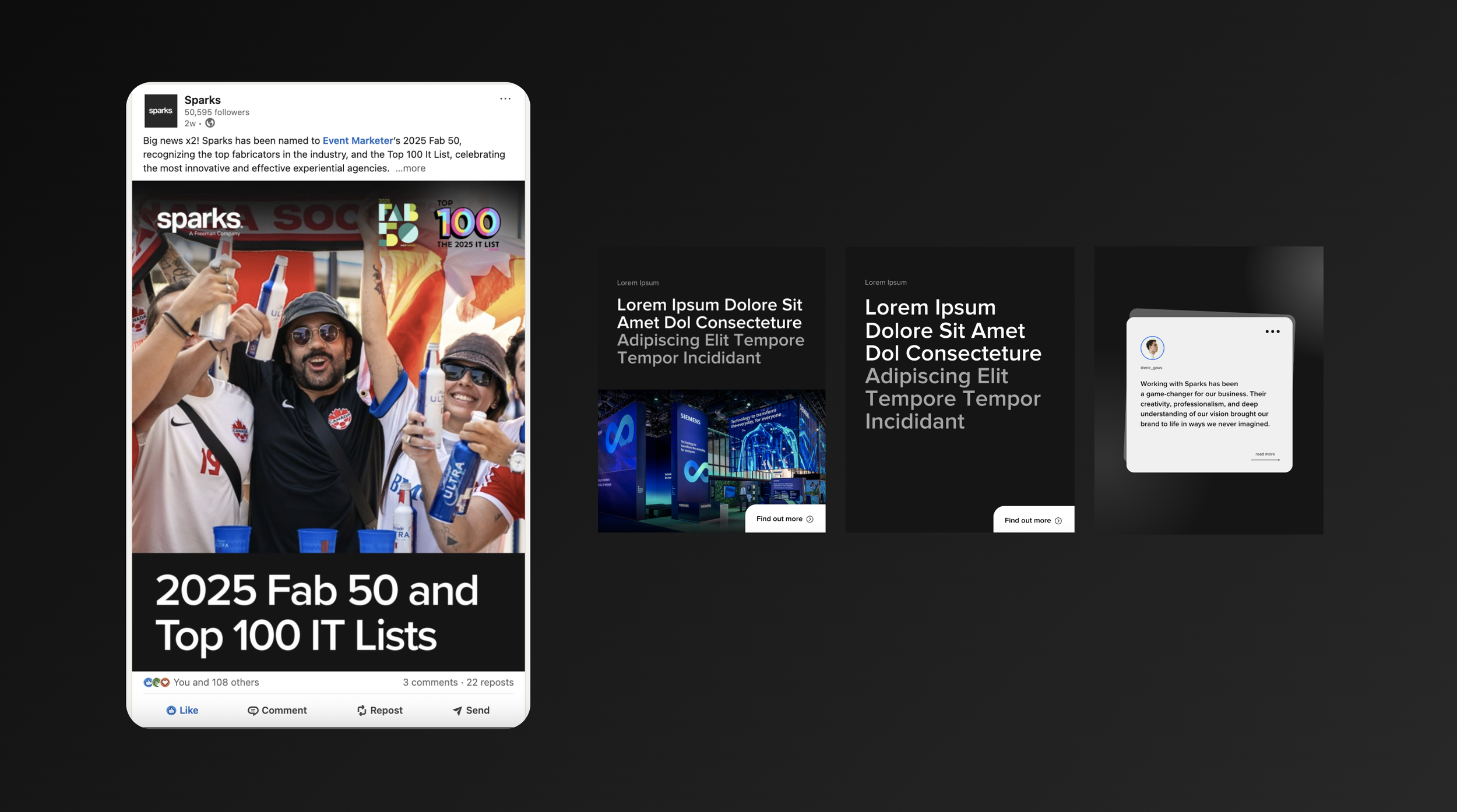 Sparks is a global brand experience agency that specializes in creating and delivering high-profile events, exhibits and activations for brands who lead, never follow.